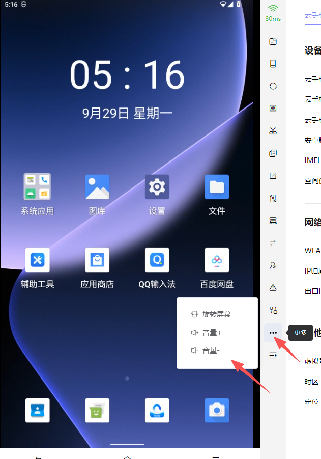 点击…,可以查看云手机全部操作。