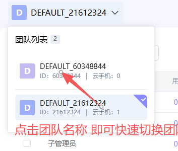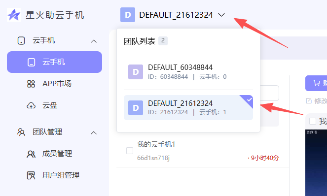 同一个账户可以加入多个团队,每个团队内的资源(包括云手机、团队APP等)都是独立的。