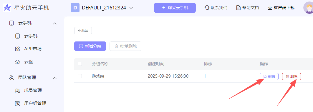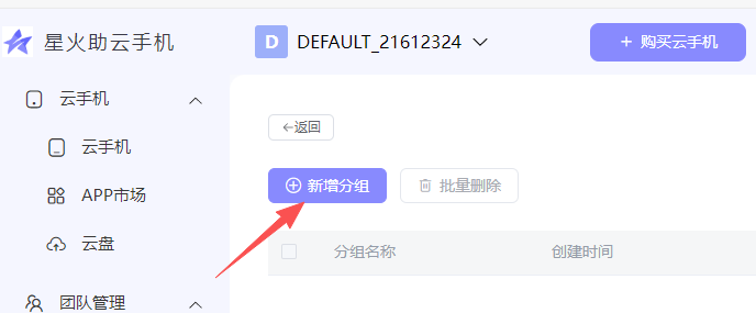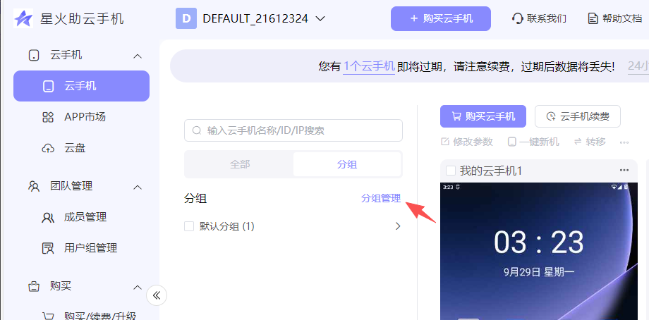 选择已创建好的的云手机分组